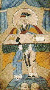 牌位·好人平安。奈何桥上一男一女相对而过,阎王在上看得明白,这对男女生前一定是行善之人。