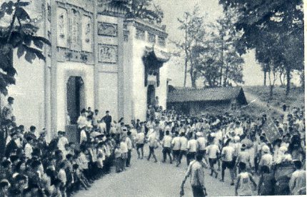 相传农历五月初五是屈原投汩罗江自杀的日子,这天,全国各地都在河时划龙舟来纪念他,这个仪式,可以想象是象征当年楚国人民打捞他尸体的情况。图为汩罗江上的龙舟竞赛。