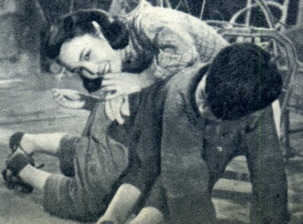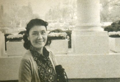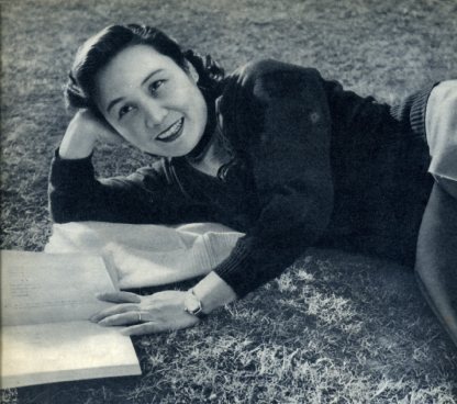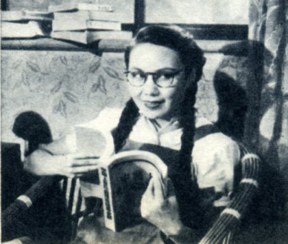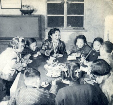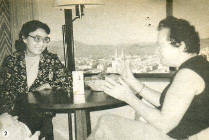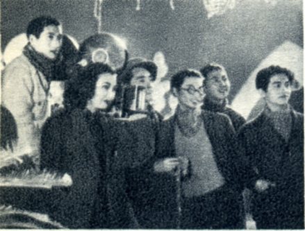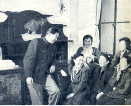 一群演员朋友。左起:刘琼、白杨、王丹凤、范雪朋、孙景璐、宣景琳。范和宣都是电影界的老前辈。