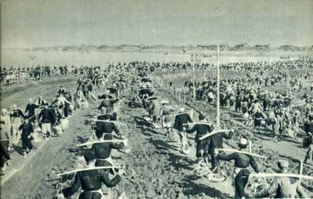 湖南省洞庭湖滨湖地区去年曾遭受特大洪水的灾害。大水以后,人民政府拔出专款,动员80万民工进行堤垸的修复,防止以后的水患。