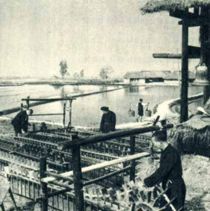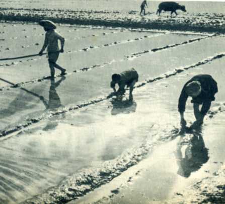 夏先菊互助组领回了政府贷给的大量早稻种籽。