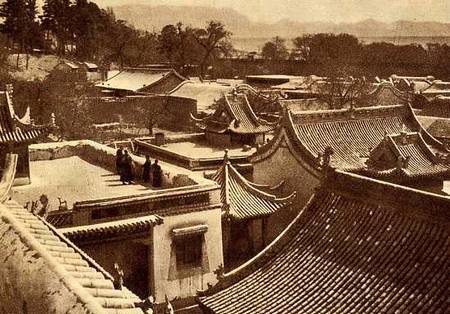 宁夏省阿拉善旗自治区人民政府所在地—巴音浩特。远处的高山是宁夏省南部的主要山脉贺兰山。(1953年)