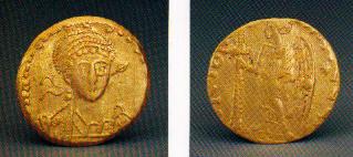 金币为东罗马皇帝列奥一世时所铸(公元457-474年)。毕克齐镇水磨沟出土。