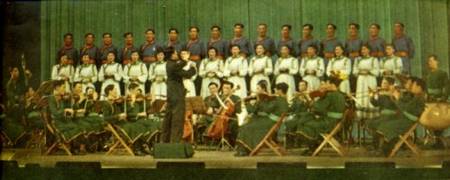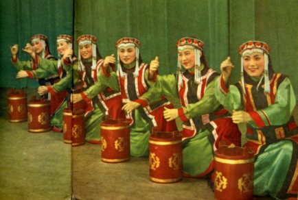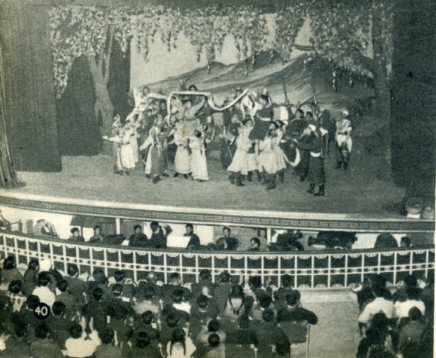 内蒙古歌剧团在呼和浩特演出歌剧“三座山”,庆祝内蒙古自治区成立(1947年5月1日)九周年。