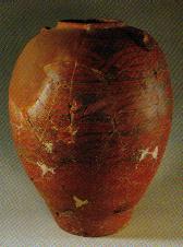小口爽耳彩陶罐。庙子沟文化,庙子沟遗址出土。