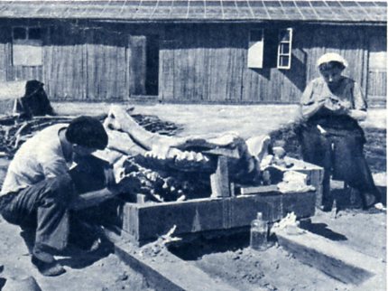 今年6月至8月,中苏两国古生物学者共同组织的“亚洲中部古生物考察队”在内蒙古二连等地发掘到大量动物化石,其中有白垩纪地层中的鸭咀龙类,有上始新统地层中的古哺乳类。这些动物同蒙古、哈萨克斯坦和西伯利亚的恐龙动物群是有联系的。这是苏联专家和我国古脊椎所技术员在修理雷兽化石。(1959年)