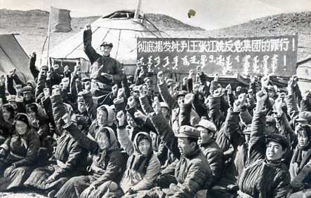 镶黄旗广大干部,贫下中牧热烈欢迎华国锋同志任中共中央主席、中央军委主席,热烈欢呼粉碎“四人帮”反党集团的伟大胜利。这是文贡淖尔公社革委会副主任龙东巴拉在揭发批判“四人帮”的罪行。