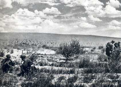 文贡淖尔公社二面井大队的牧民在积极治理沙漠。