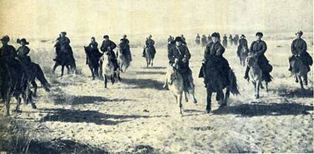 精于骑术的蒙古人民在锡林浩特附近的原野上奔驰。