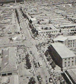 二百多年前,在锡林郭勒大草原中心地带的锡林郭勒河畔,修建了一座贝子庙(蒙古族王公的府邸),周围有几十间简陋的土房,这就是今天锡林郭勒盟首府-锡林浩特的前身。从那时到解放前,只是多了一些土房,四周依旧是一片荒滩。解放后,锡林郭勒草原发生了翻天覆地的变化。图为锡林浩特鸟瞰。(1977年)