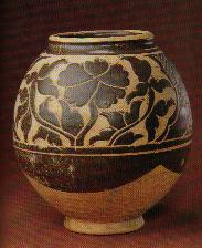 (西夏)褐釉牡丹剔花罐,纳林塔出土。