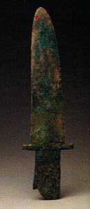 商早期 青铜戈。长28.5厘米,宽5.2厘米。纳林塔朱开沟遗址出土。