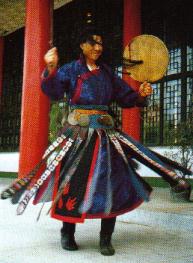 蒙古族萨满“行博”。萨满教曾盛行于蒙古族、满族、达斡尔族、鄂温克族等民族中。现今仅能在科尔沁地区见到萨满“行博”的身影。