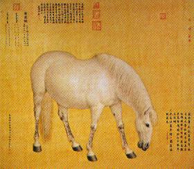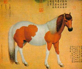 《霹雳镶》(清)郎世宁绘 台北故宫博物院藏。“霹雳镶”为喀尔喀亲王进贡乾隆皇帝的骏马。