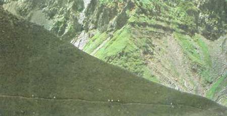 海拔一千八百多米以上的火山锥体部分。这是火山爆发时喷出大量岩浆浆冷却后形成的遗物。
