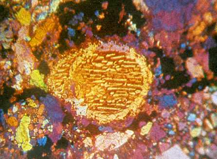 吉林陨石的三张显微照片:重叠的炉条状球粒。