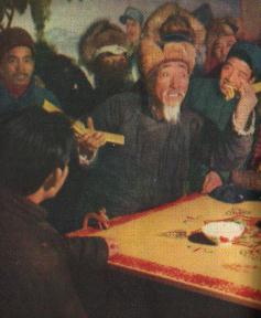 “打竹板,响连天,公社的新事说不完......”这是大赉镇人民公社的66岁老社员韩福在食堂里给社员们说快板。(1961年)