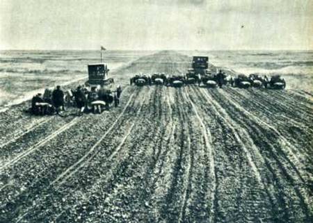 开通县的大片盐碱荒地上,去年春季已开始试验机械造林。