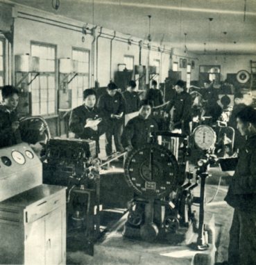 长春汽车拖拉机学院汽车拖拉机专业的学生在听助教讲解斯大林—80号拖拉机的构造与性能。