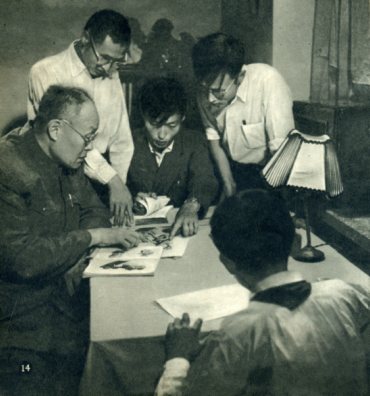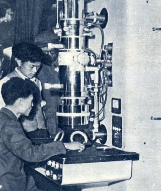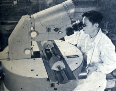 建国十周年前夕,中国科学院光学精密机械仪器研究所制成五种重要光学精密仪器。这是其中的新万能工具显微镜。