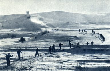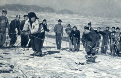 吉林市的尖山子滑雪场上,2月初举行了第三届全国滑雪比赛。这次的比赛项目比过去复杂,某些项目的距离和难度也有了很大的增加。虽然滑雪运动在我国开展的时间还不久,这次却涌现了大批优秀的新手。