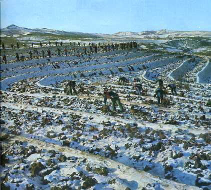 这里原来是片荒山,去冬今春已经改造成水平梯田。