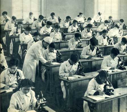 医学院一年级第二班学生在做实验。
