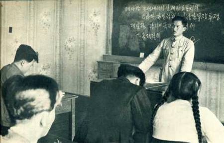 师范学院的毕业生全部在本民族的中等学校服务。这是毕业生权秉春在延边第二高中上课。