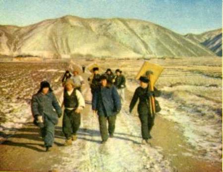延吉县太兴村的儿童,早晨到学校去上学。