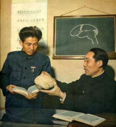 国内许多兄弟大学积极地支援年青的延边大学。这是北京师范大学儿童心理学教授朱智贤(右)指导在该校进修的延边大学助教林东虎。