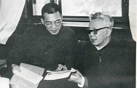 以克•科里亚爵士为首的锡兰政府代表团和我国政府就建立外交、经济、文教关系发表了联合公报。图为克•科里亚爵士到达北京时受到我国外交部副部长章汉夫(左)的欢迎。(1956年)