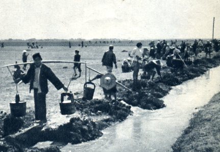睢宁县前进农业社挖渠引水,浇田种麦。(1958年)