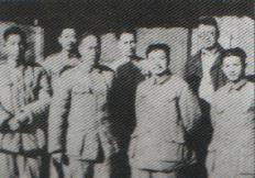 1947年与饶漱石(前排右二)、刘贯一(后排右一)等合影。舒同(前排右一)时任华东军区政治部主任。