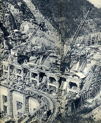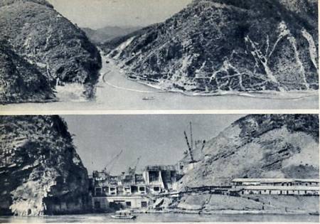 1957年发电的上犹水电站是一座坝内厂房式的水电站,装机容量六万瓩。(1958年)