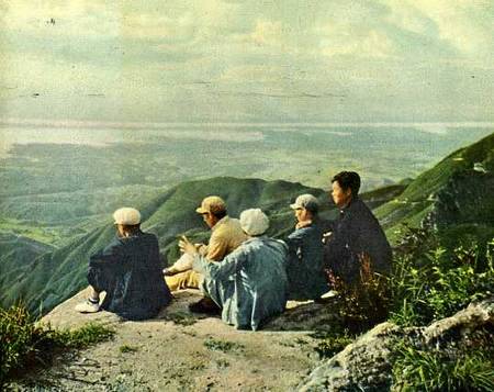 庐山江西省干部疗养院的疗养员们,在日照峰上俯览山麓景色。