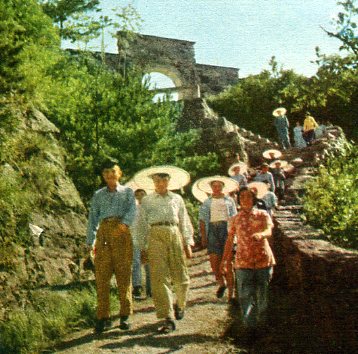 庐山中南总工会工人休养所的工人们,在“花径”—庐山名胜之一游玩。工人乘兴向伙伴们演唱民歌。