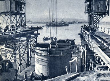 江西南昌的赣江大桥正在紧张施工。这座大桥将把浙赣铁路和南浔铁路联结起来。(1959年)