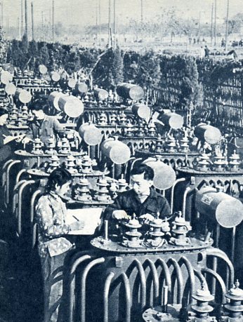 这是江西省南昌市江西电机厂制造的一批变压器。目前江西省农村需要的排灌设备和电机设备可以由南昌市制造。南昌在解放前只有两家小修理厂,现在已拥有制造内燃机、拖拉机、工作母机等设备的工厂了。(1962年)