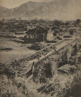 横峰县周村大桥。1927年底,方志敏、吴先民等同志在这一带发展农民武装,组织了有名的弋、横大暴动,建立了以楼底蓝家为中心的革命根据地。(1960年)
