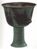 (元)釉里红螭纹高足杯。1980年高安县窑藏出土。