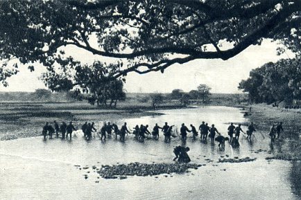 江西省清江县(现樟树市)店前乡农民惯用这种方法拦河捕鱼。(1957年)