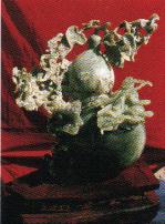 - 系采用当地所产岫岩玉石雕琢而成。多透明或半透明,明亮油润,蜡状光泽强。产品品种已由原有的素活、手球、烟具、戳料等发展至当前的人物、鸟兽、炉、瓶、熏等百余种。