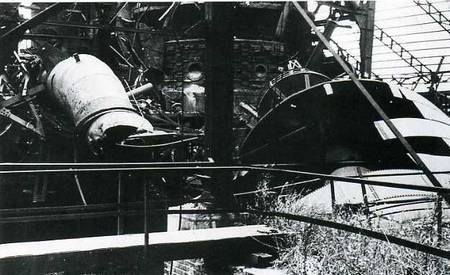 遭战争破坏的鞍山钢铁厂一片废墟。