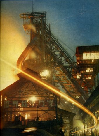 鞍山,人民的钢都,已在解放时疮痍满目的废墟上开出一朵社会主义的灿烂鲜花。在市区的西部,鞍山钢铁公司的厂房林立,日日夜夜地闪耀着红光。这个公司经过九年恢复和扩建,已拥有62个现代化的厂矿,1957年的钢产量达到291万吨,超过解放前最高年产量2倍以上。