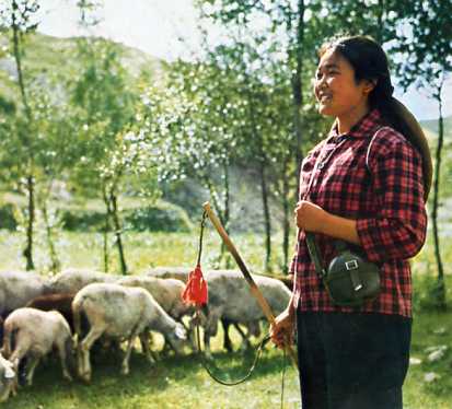 牧医系毕业生苏景华(中)回乡后担任了大队党支部书记。这是她同社员一起劳动。