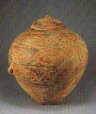 彩陶盖罐。通高40.2厘米,牛河梁遗址出土。
