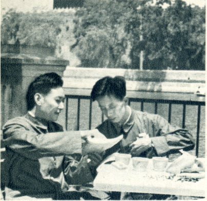 高玉宝在写作上经常得到部队作家荒草(左)的帮助。