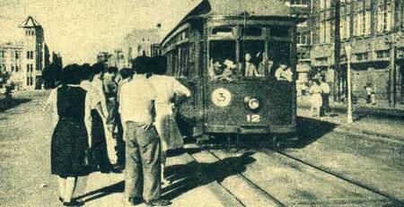 街道上的电车有很多是由女司机驾驶的,妇女在各个劳动岗位上表现出伟大的力量。