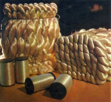 柞蚕是野蚕的一种,它以山间的柞树为饲料,并直接在树上作茧。柞蚕丝是我国的特产,它具有良好的耐酸咸特性,它的强力大,仅次于植物纤维中的麻,较棉花、羊毛的纤维都坚韧。我国柞蚕丝绸的生产百分之七十集中在辽宁省。而安东市的产量又占了辽宁省的一半以上。