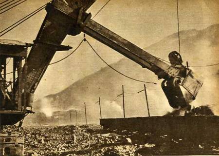 把煤炭推向输送皮带的推土机手,他们的干劲也和煤产量一样,显著地增加了。